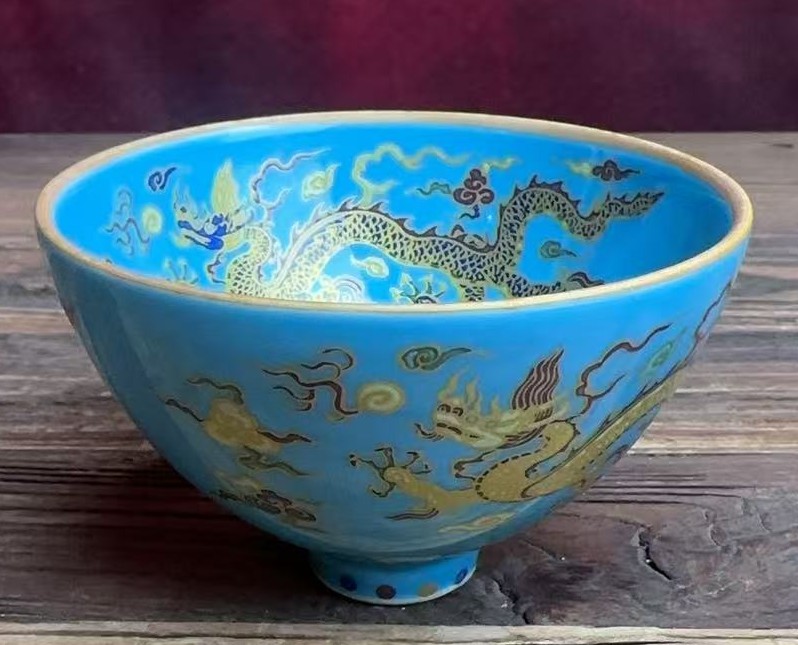 明宣德珐琅彩云龙纹鸡心杯