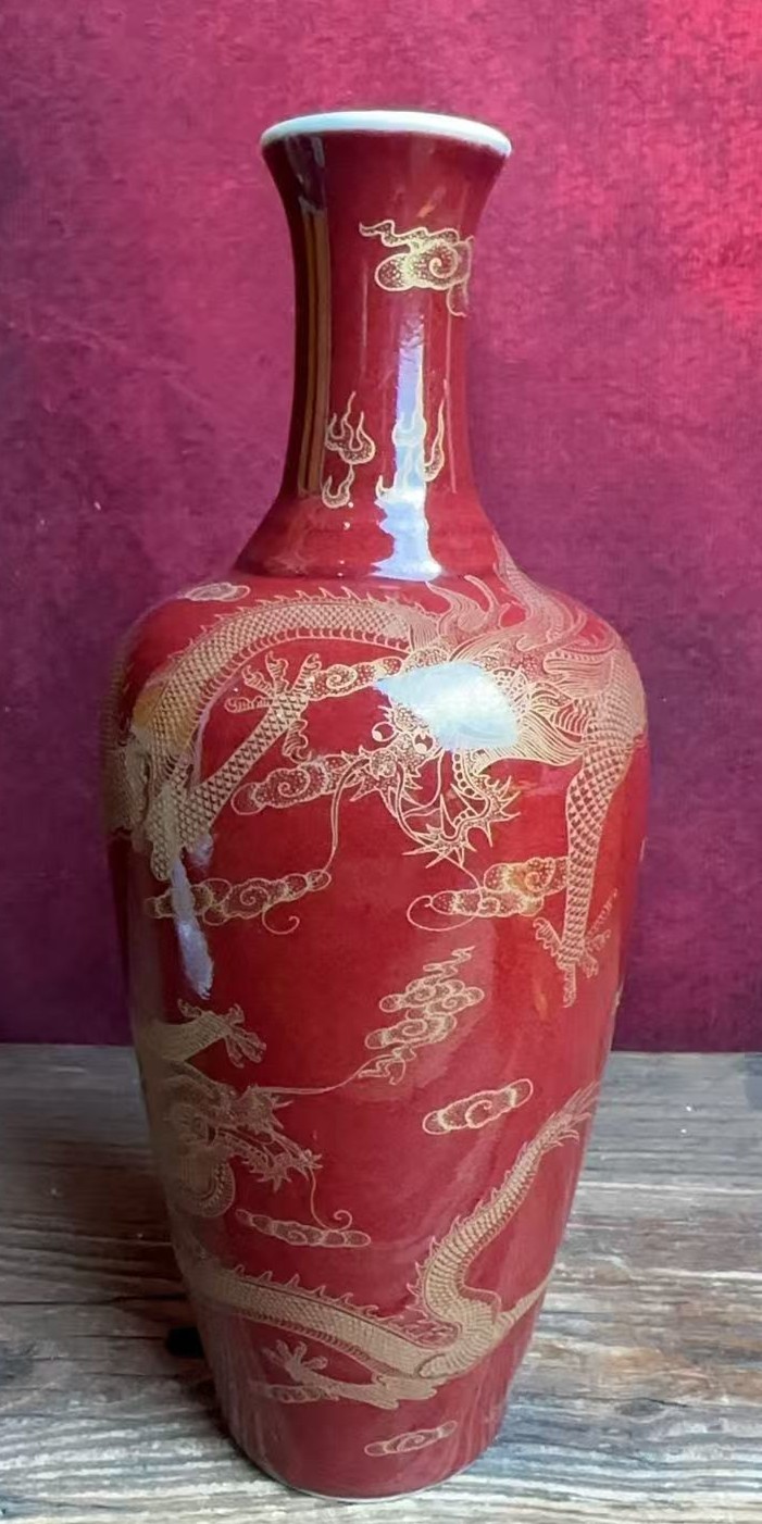 名称:清乾隆郎红釉描金云龙纹莱菔尊