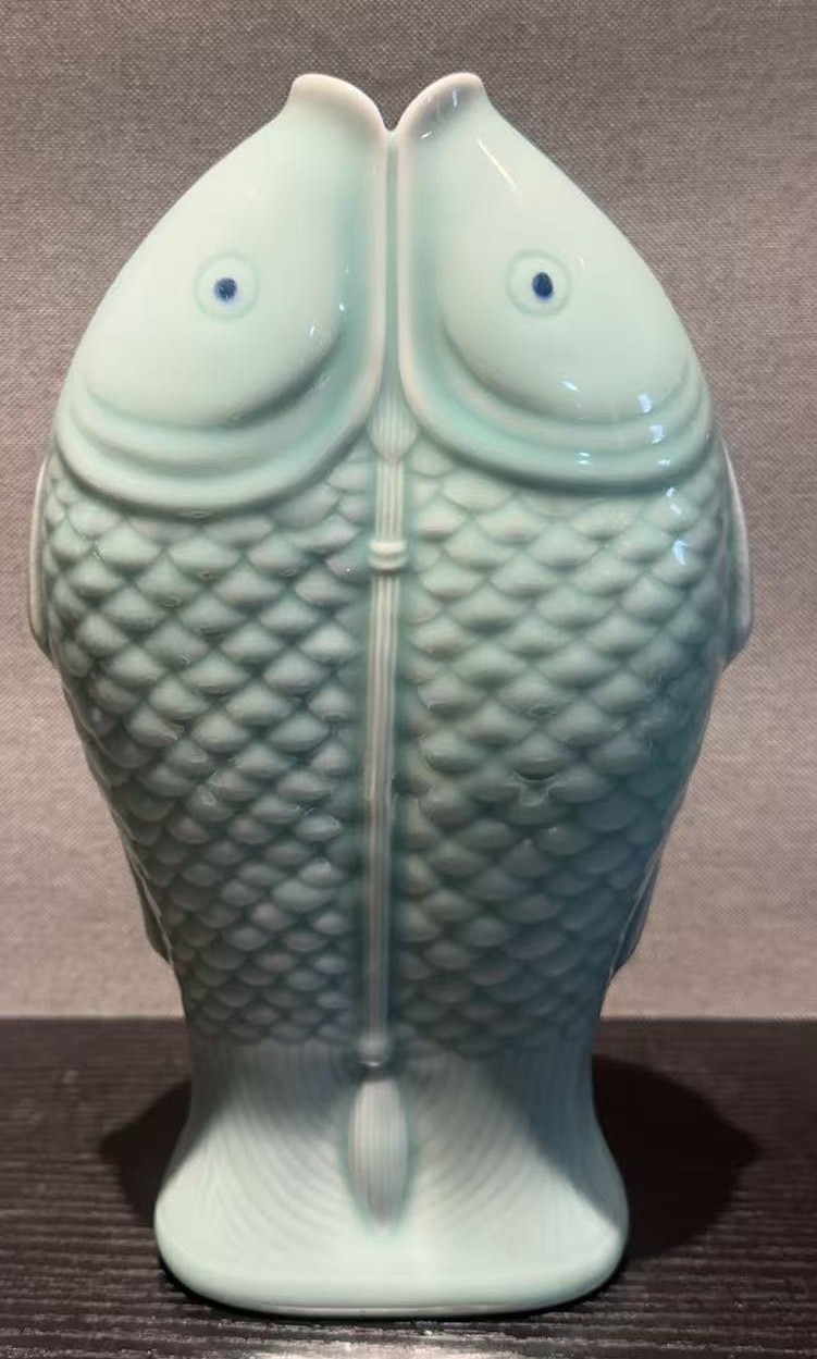 名称:清乾隆青釉双鱼纹花插