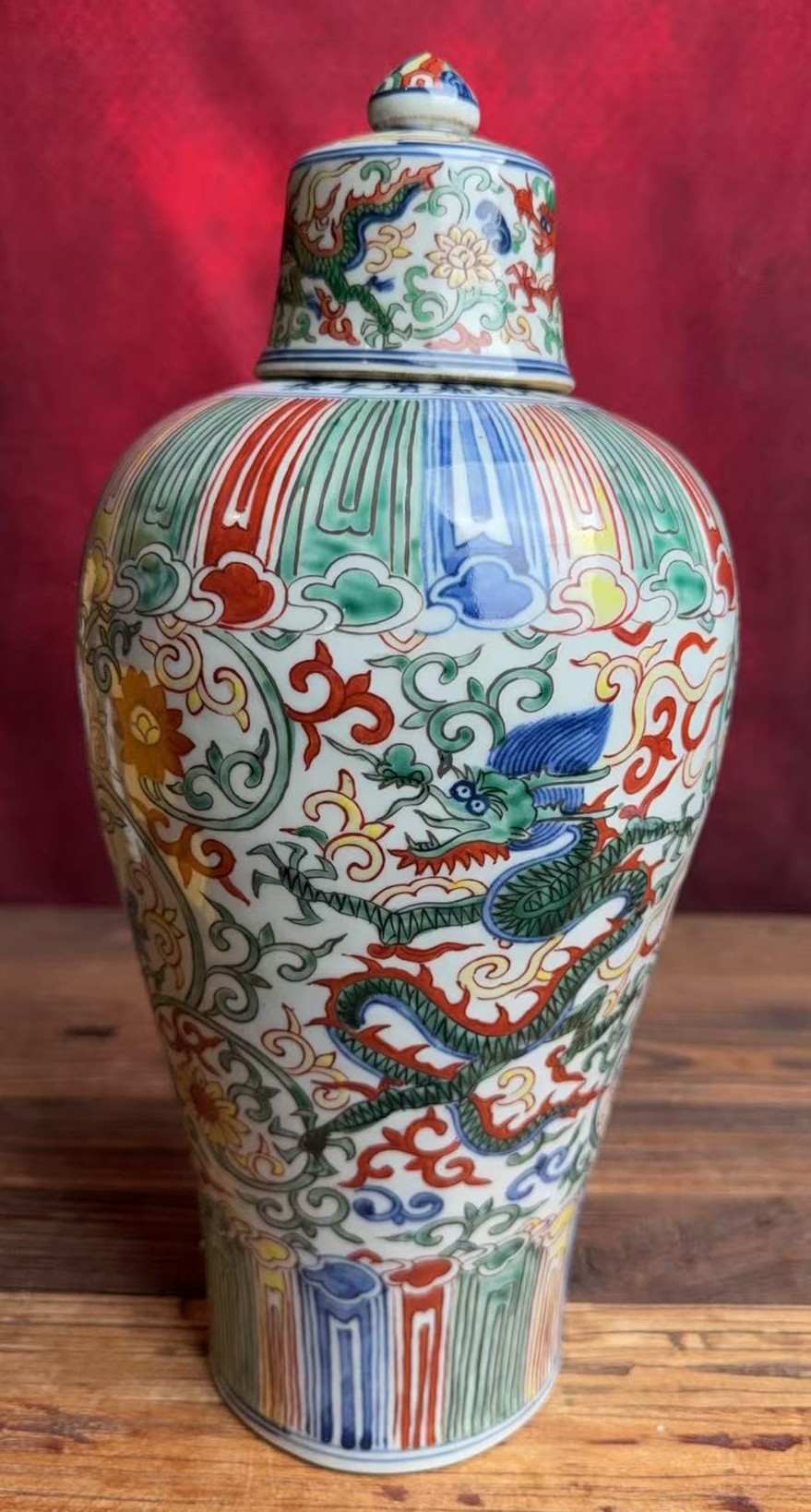 名称:明嘉靖青花五彩穿花龙纹梅瓶