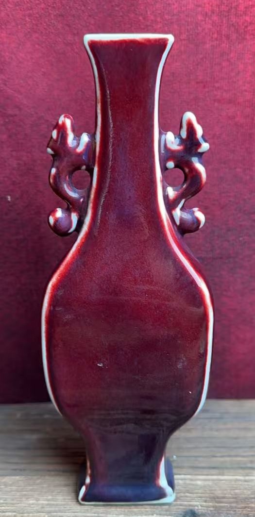 名称:清乾隆郎红釉双耳四方瓶