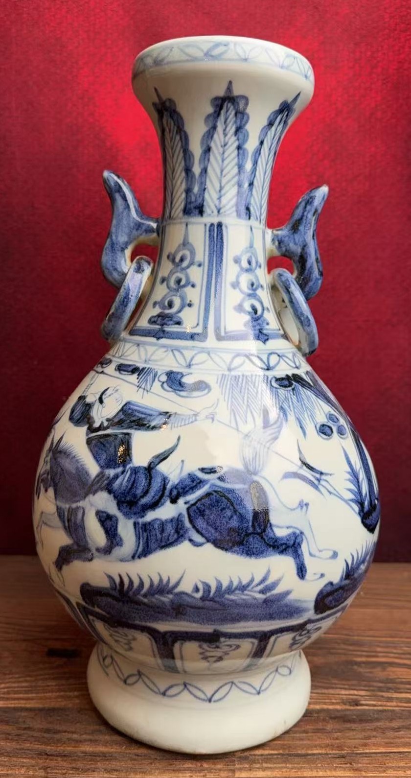 名称:白浒孤窑青花人物故事纹双耳瓶