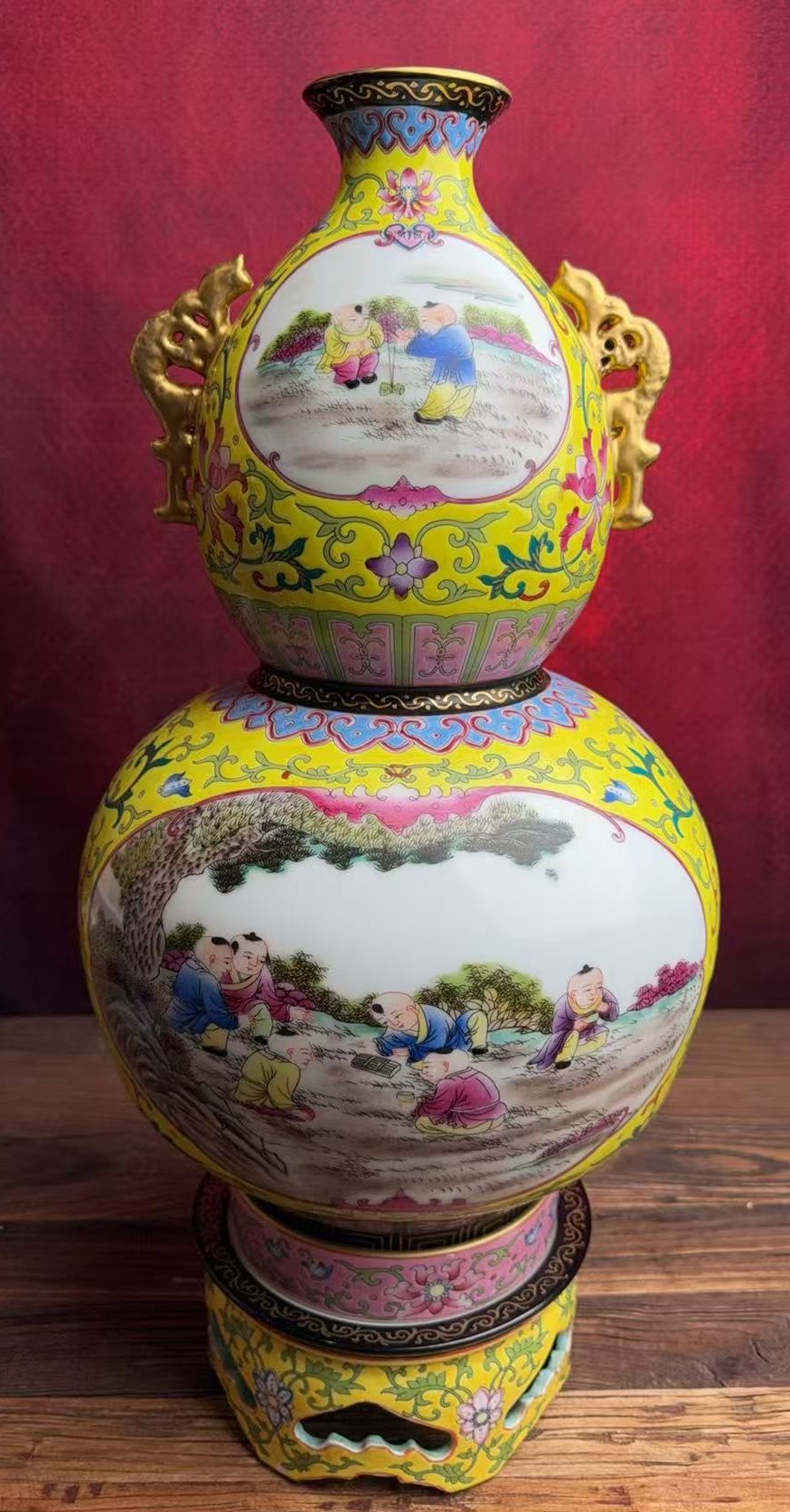 名称:清乾隆珐琅彩开窗婴戏纹转体葫芦瓶
