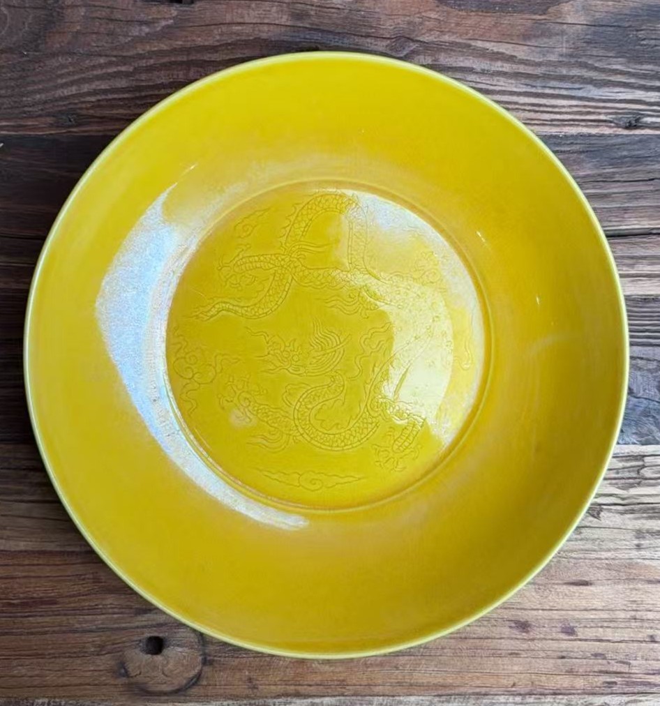 明成化黄釉暗刻云龙纹碗