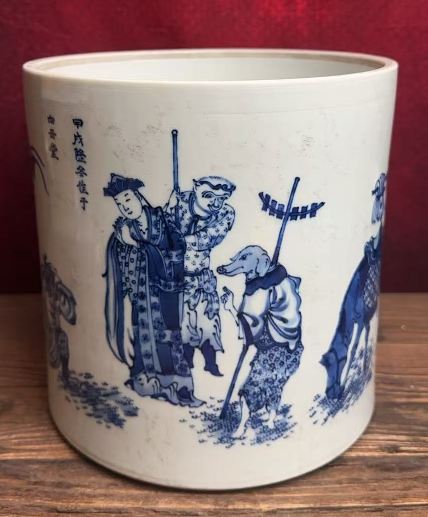 名称:明崇祯青花西游人物纹笔筒