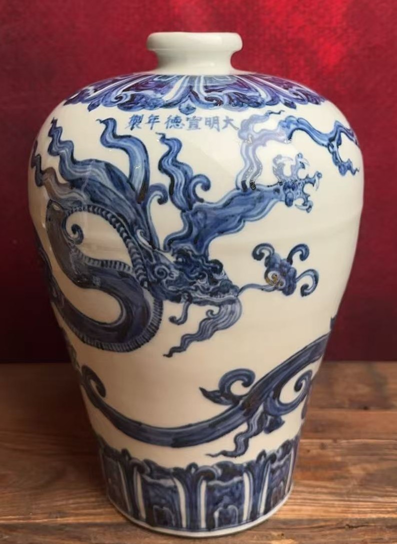名称:明宣德青花龙纹梅瓶