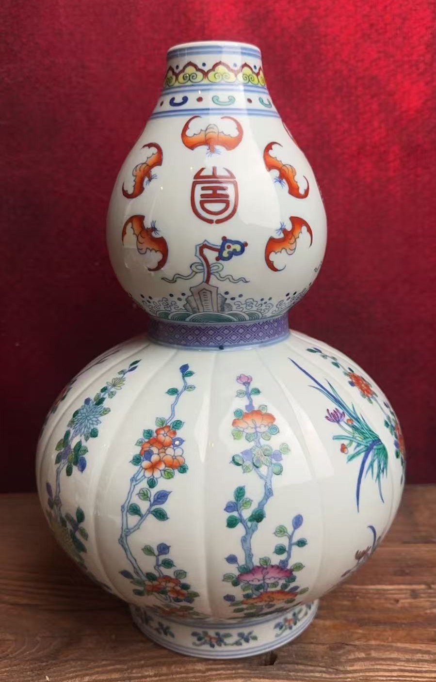 名称:清雍正斗彩五福捧寿开窗花卉纹葫芦瓶