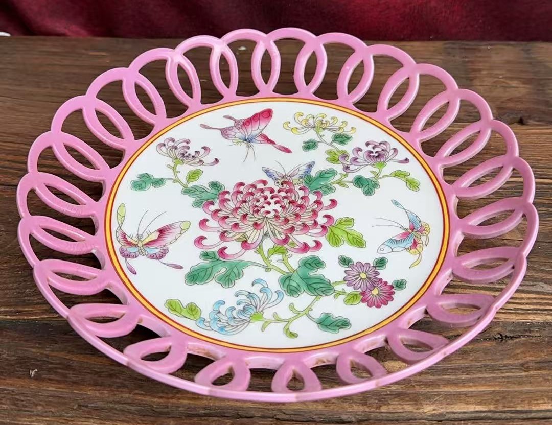 名称:清雍正珐琅彩花蝶纹镂雕花边果盘