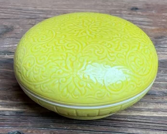 名称:清光绪黄釉暗刻花卉纹盖盒