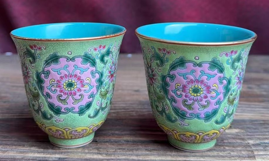 名称:清雍正内松石绿釉外珐琅彩花卉纹杯