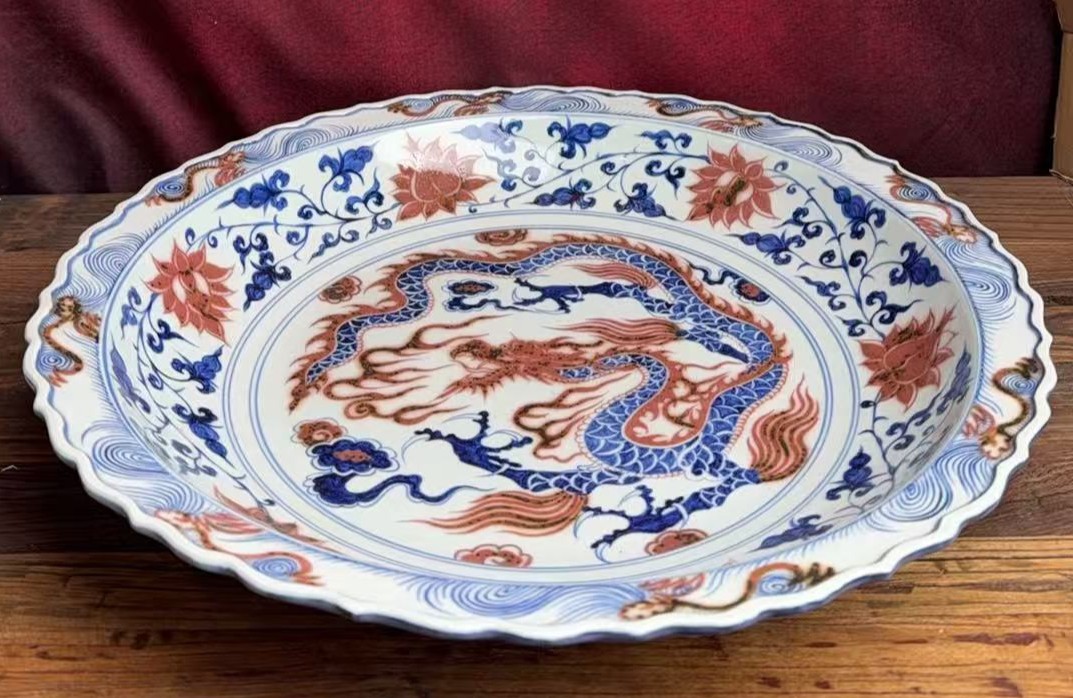 白浒孤窑青花釉里红龙纹大盘