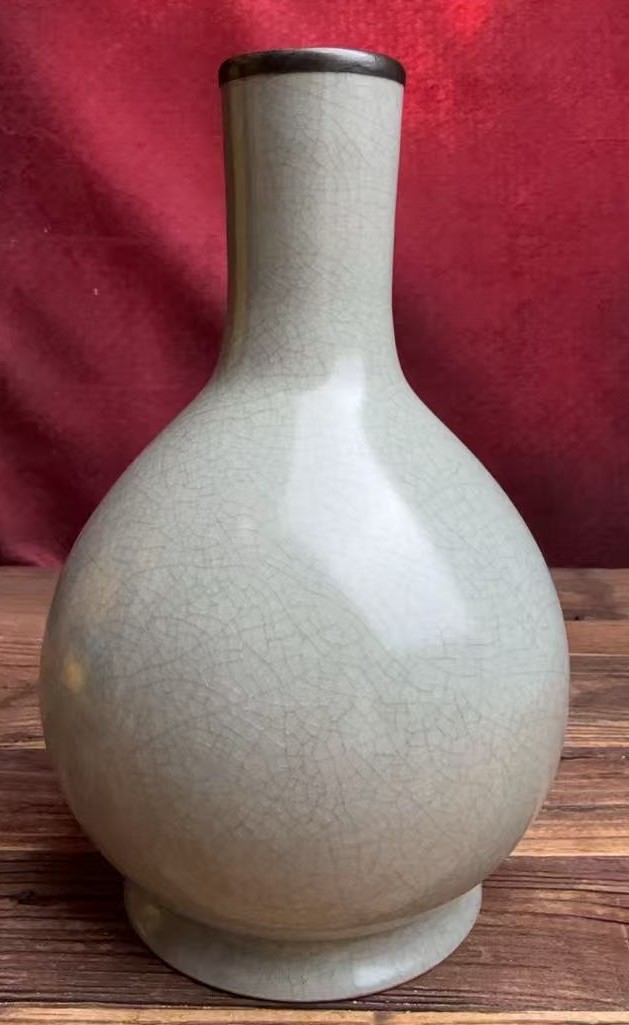 名称:汝窑天青釉镶银胆瓶