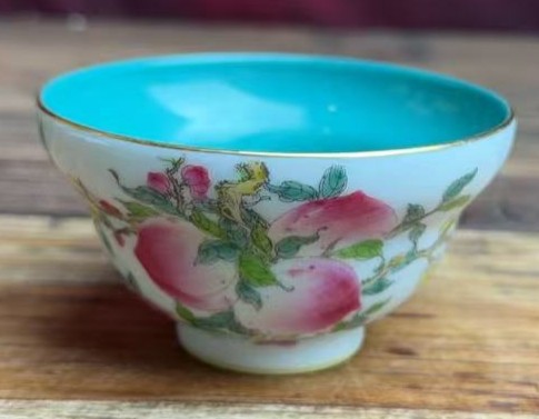 名称:清雍正粉彩描金寿桃纹折腰杯