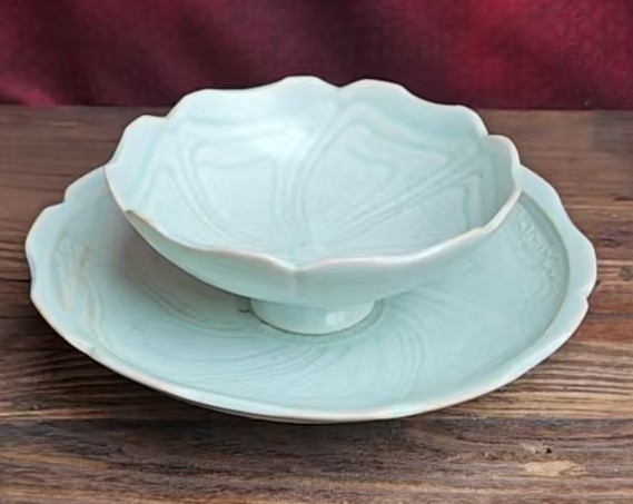湖田窑花口盏托