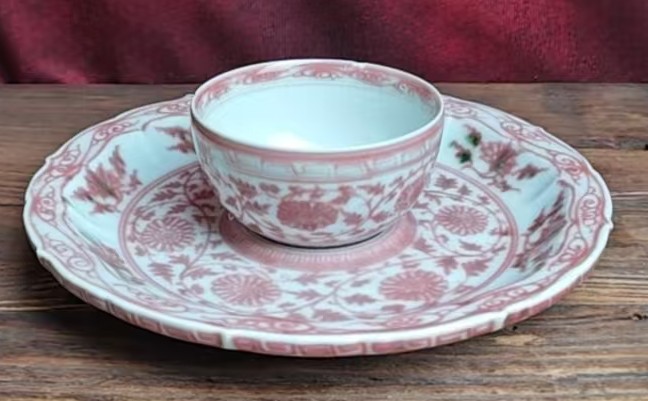明洪武釉里红缠枝花卉纹盏托