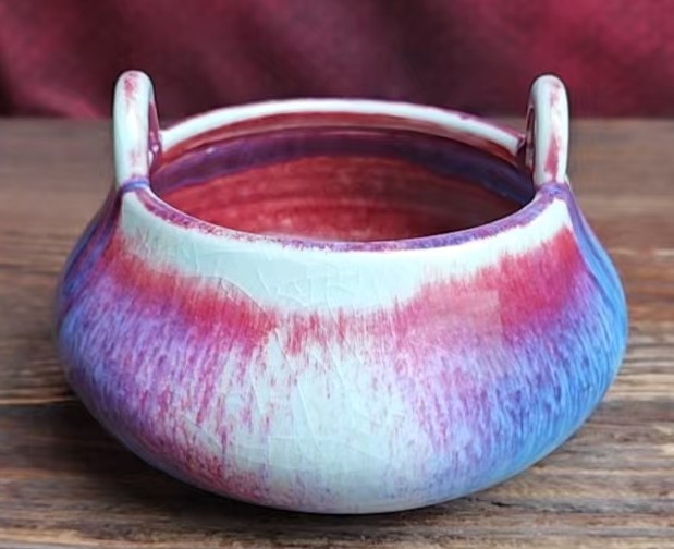 名称:清乾隆钧红釉桥耳炉
