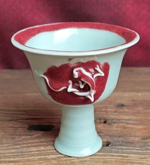 元釉里红蟠螭纹高足杯