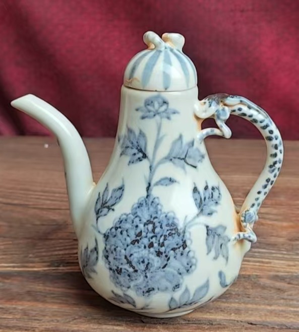 名称:元青花花卉纹龙柄执壶